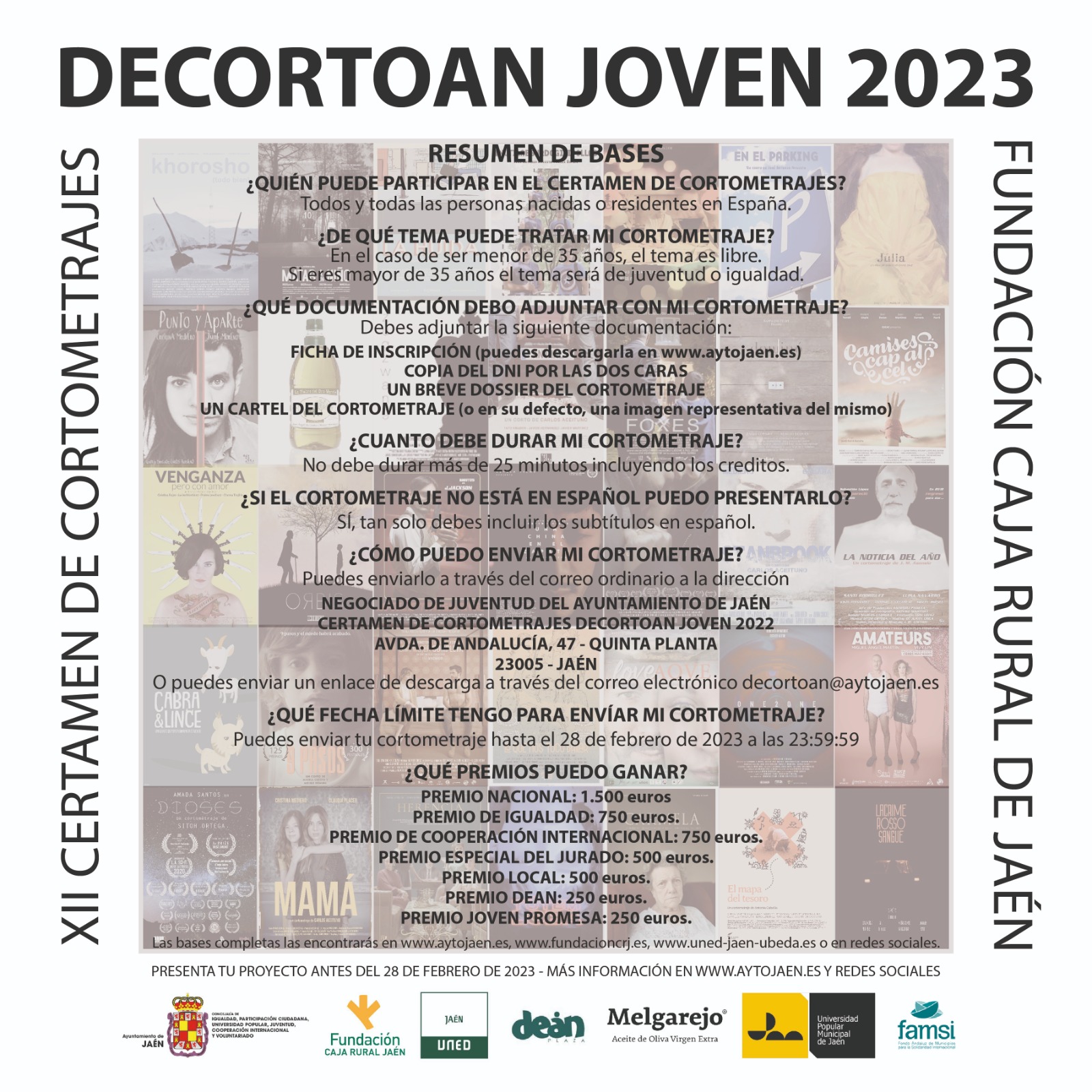 - Negociado de Juventud del Ayuntamiento de Jaén Certamen de Cortometrajes Decortoán Joven. Avenida de Andalucía, nº. 47 - 5ª planta, 23005 JAÉN.