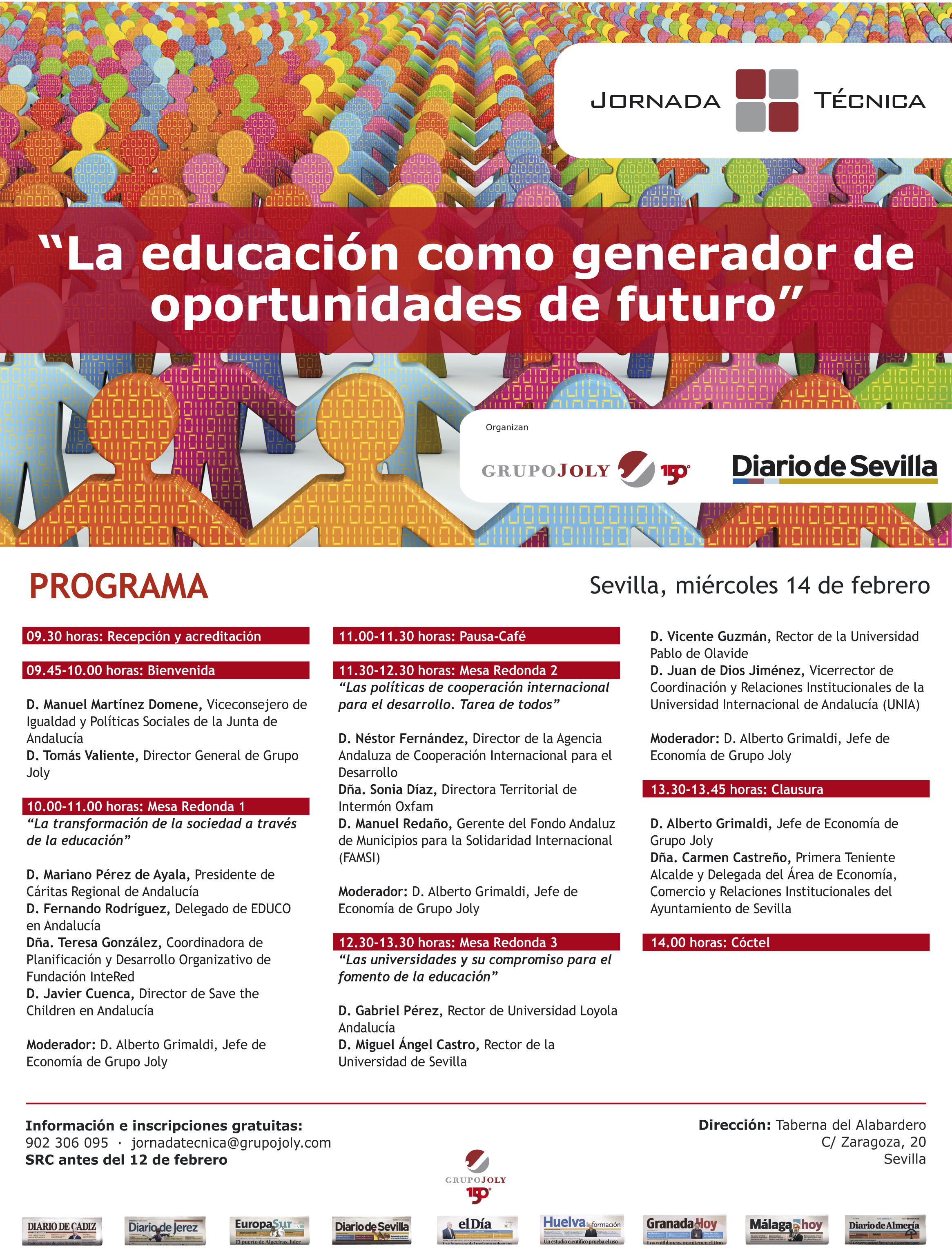 La jornada se celebra en la Taberna del Alabardero (calle Zaragoza, 20, Sevilla). Dará comienzo a las 9:30 horas, y está previsto que finalice a las 14:00 horas.