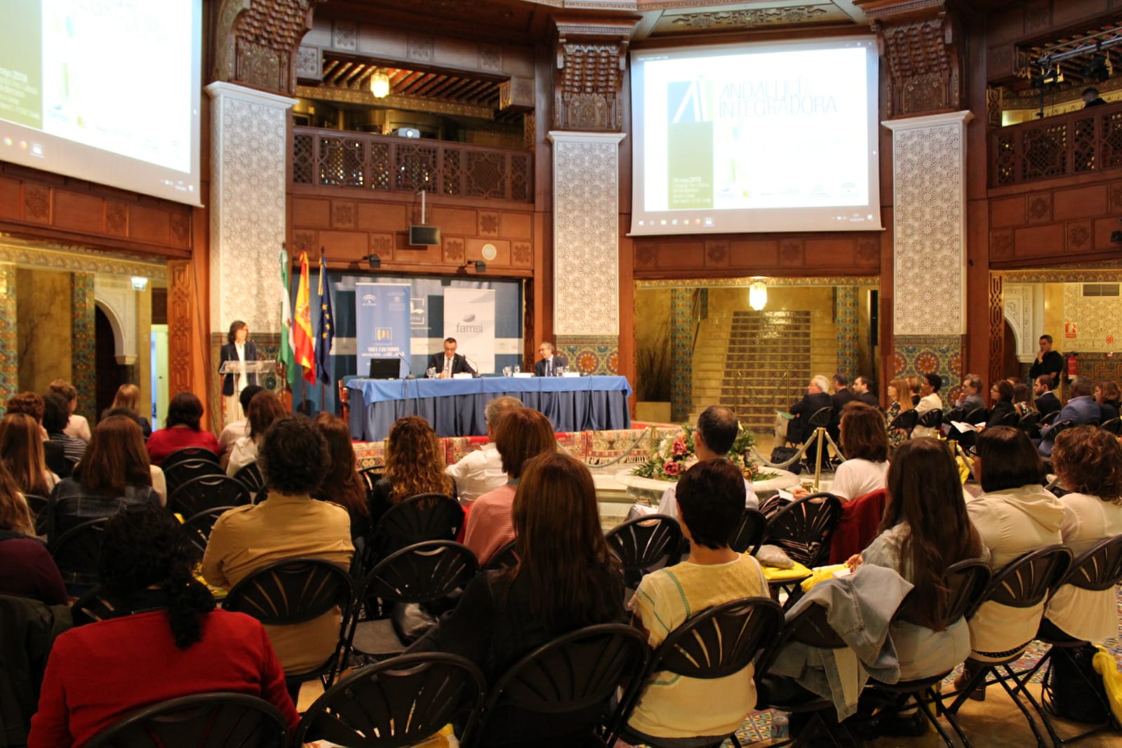 La consejera de Justicia e Interior de la Junta de Andalucía ha abierto el Seminario Andalucía Integradora que organiza el FAMSI en la Fundación Tres Culturas del Mediterráneo. En su intervención, Rosa Aguilar, ha destacado la crueldad de una situación que sigue provocando la huida de millones de personas que buscan a una nueva vida en Europa.