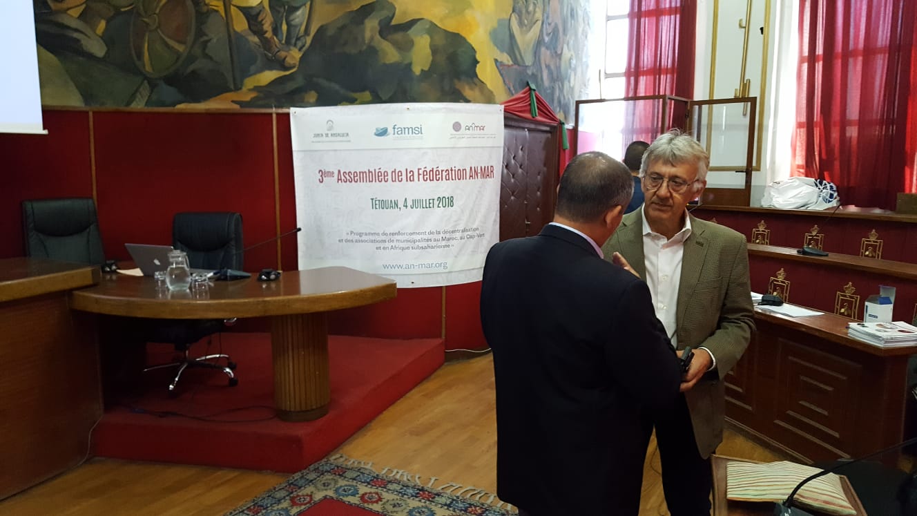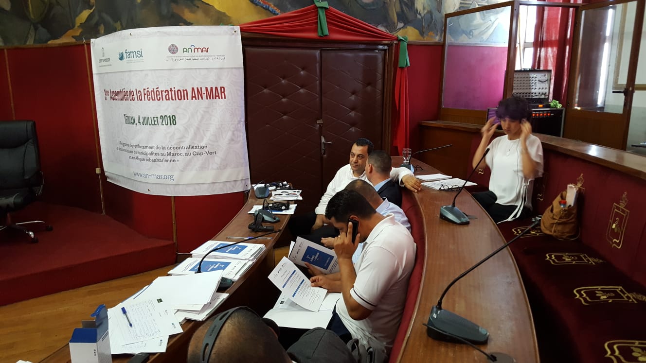 Nueva e intensa etapa comienza ahora para la Federación AN^MAR que intensifica las acciones orientadas al fortalecimiento institucional, la puesta en marcha de proyectos de Desarrollo Local y el trabajo en políticas de Igualdad. El ámbito de trabajo de la Federación abarca las colectividades locales de las regiones de Tánger Tetuán-Alhucemas- y La Oriental. Es decir, el norte de Marruecos y Andalucía. En la Asamblea celebrada en el Salón de Plenos del Ayuntamiento de Tetuán, se han reunido una delegación andaluza y más de una veintena de primeros ediles marroquíes que han acudido a la cita para elegir la nueva Junta Directiva, presentar y aprobar el balance técnico y económico 2017-2018, se han esbozado y debatido las líneas del plan de trabajo de este ejercicio y se han emplazado a la próxima conclusión del Plan Estratégico de las Comunas Rurales de la Federación AN^MAR.