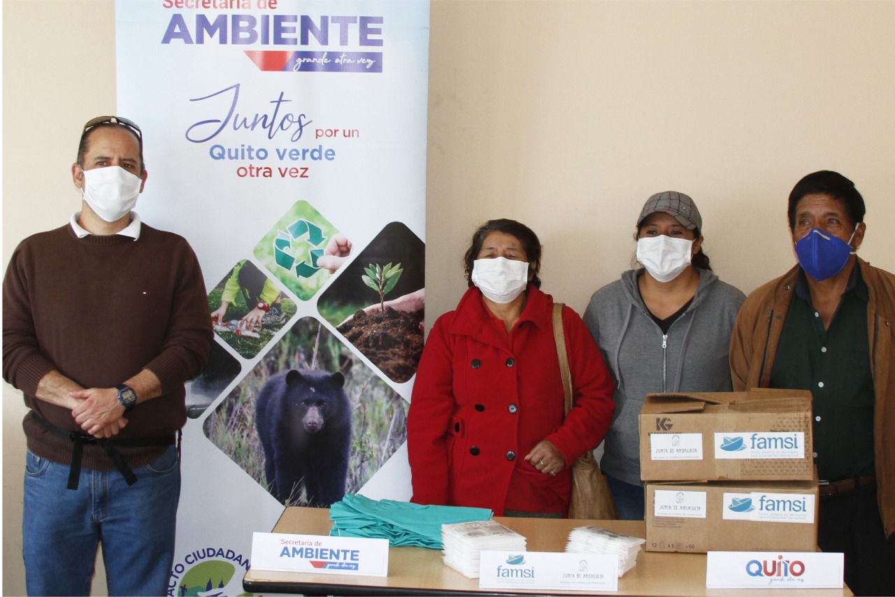 En el marco de colaboración entre el FAMSI y el Municipio de Quito, y gracias al apoyo de la AACID, se crearon estos centros de reciclaje y se dotó a los/as recicladores/as del equipamiento necesario para evitar que este grupo de la población pudiera contagiarse por el manejo de residuos contaminados: equipos de protección personal (EPP), mochilas y motobombas de fumigación y desinfectante para el correcto tratamiento de los residuos.