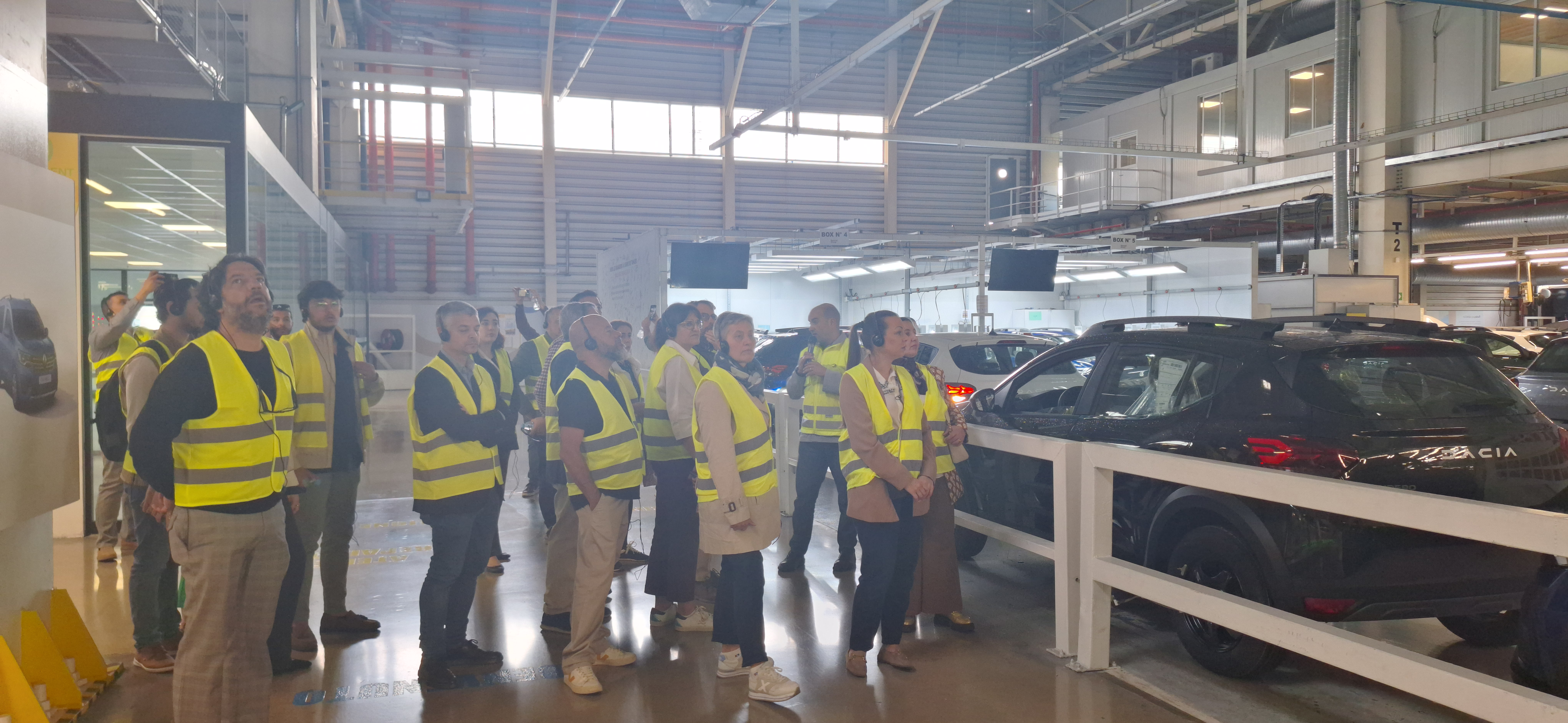 La primera parada fue en Renault, donde exploramos la zona de biomasa, observando cómo se transforma la oliva en energía. También visitamos la impresionante cadena de montaje, que emplea a más de 8000 personas, de las cuales el 13% son mujeres. La mayoría de los coches producidos aquí se destinan a la exportación, con un proceso de calidad meticuloso.