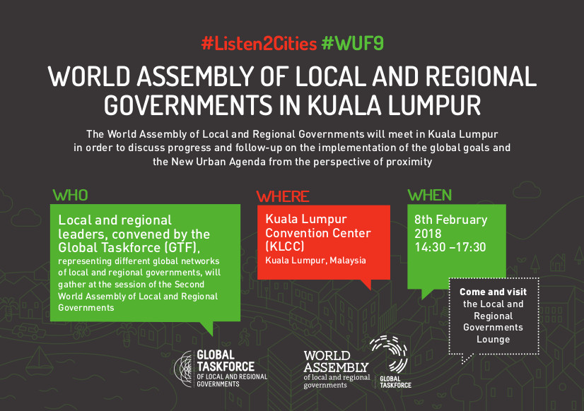 1. Una sesión de la Asamblea Mundial de Gobiernos Locales y Regionales, en la que se revisará el progreso y el monitoreo de la implementación de los objetivos globales y la Nueva Agenda Urbana en un enfoque local. Será el 8 de febrero, con la presencia de unos 150 líderes locales y regionales.