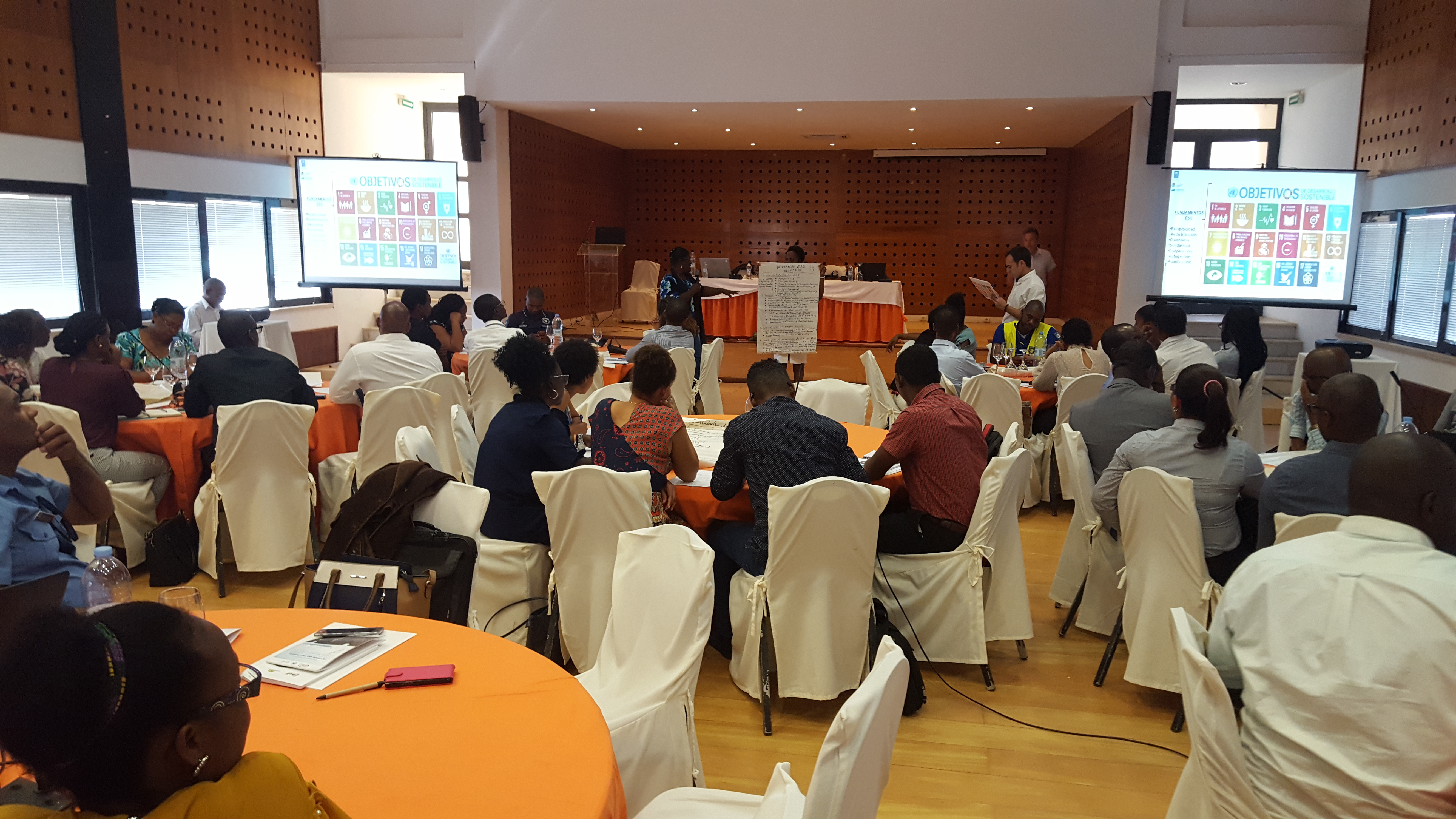 En el segundo caso, el seminario celebrado el dia 11 de marzo, estuvo vinculado al ciclo formativo para personal técnico del Programa Plataformas para el desarrollo local y los objetivos 20/30 de los municipios de las islas de Santiago y Maio, que es una iniciativa del Gobierno de Cabo Verde financiado por la cooperación del Gran Ducado de Luxemburgo, gestionado por el Ministerio de Finanzas y apoyado técnicamente por el PNUD, introduciendo las nociones básicas sobre la economía social y solidaria que permitieron realizar de forma participativa un primer diagnóstico de las potencialidades de los municipios participantes, las posibilidades de ligar las acciones de desarrollo a la ESS y relacionarlas con el cumplimiento de los ODS.