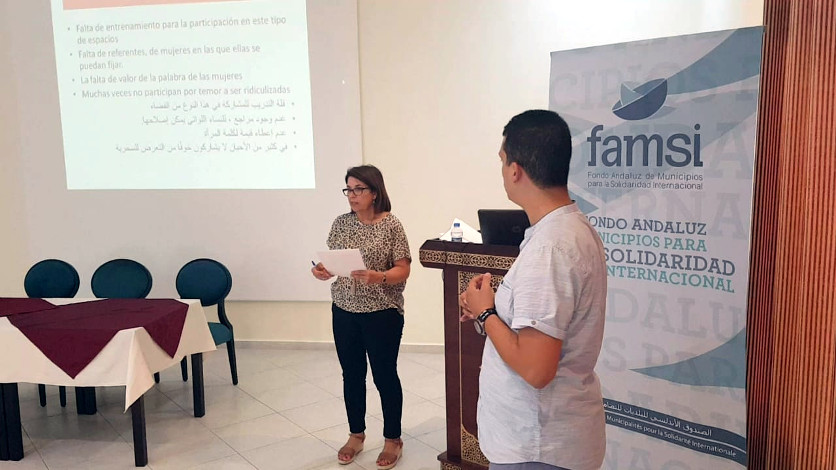 La comuna de Tetuán ha presentado el reciente proceso de inclusión de perspectiva de género de su PAC a través de su coordinador, Abdelhak el Andaloussi. Por su parte, Oliva López Navamuel, coordinadora del área de igualdad de género del GDR de Sierra Mágina, ha expuesto los importantes avances en materia de igualdad en su territorio gracias en parte, a una férrea voluntad política y a una planificación territorial sensible a género que ha ido implementándose gradualmente hasta consolidar un proceso de defensa de la mujer y de sus derechos y oportunidades.
