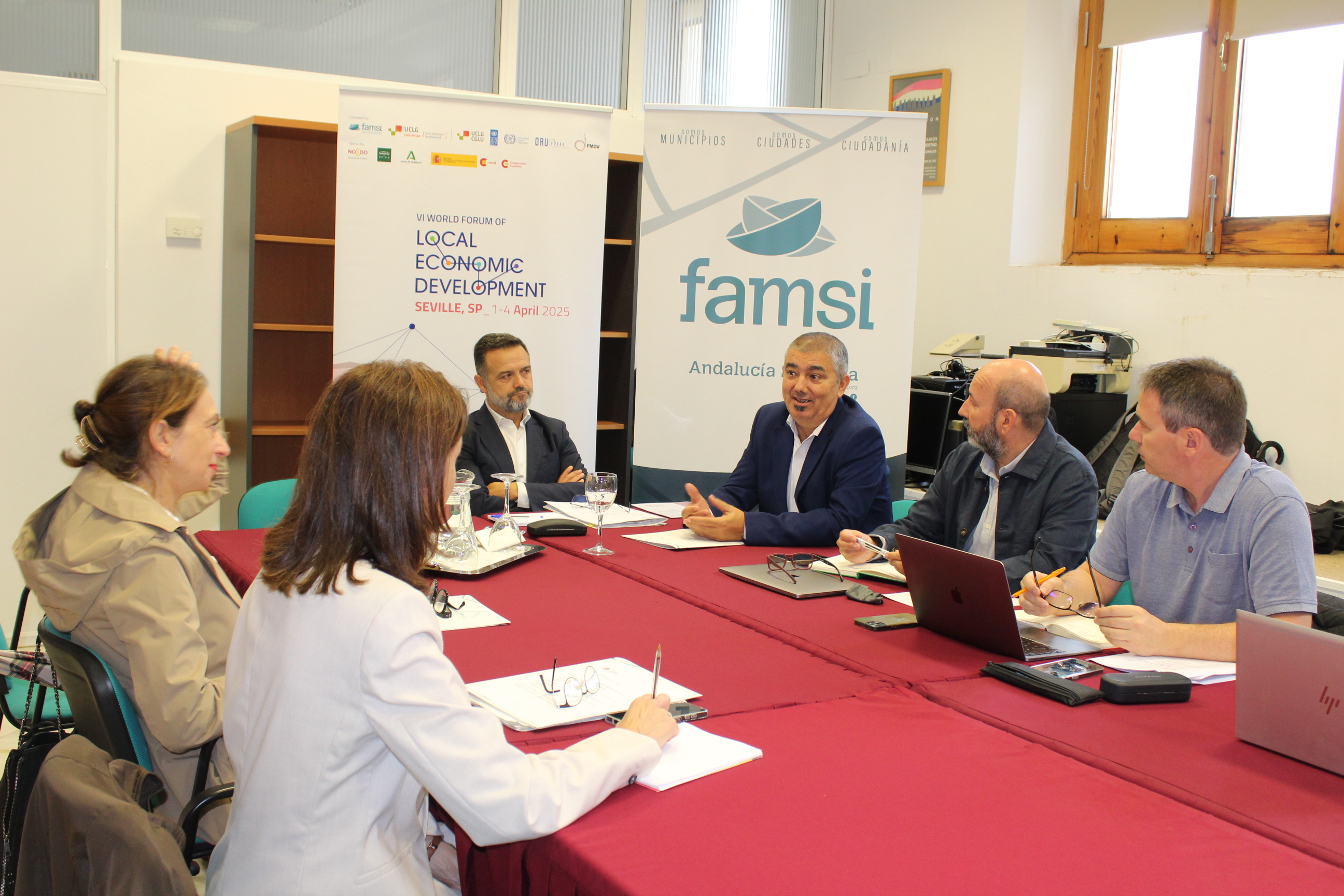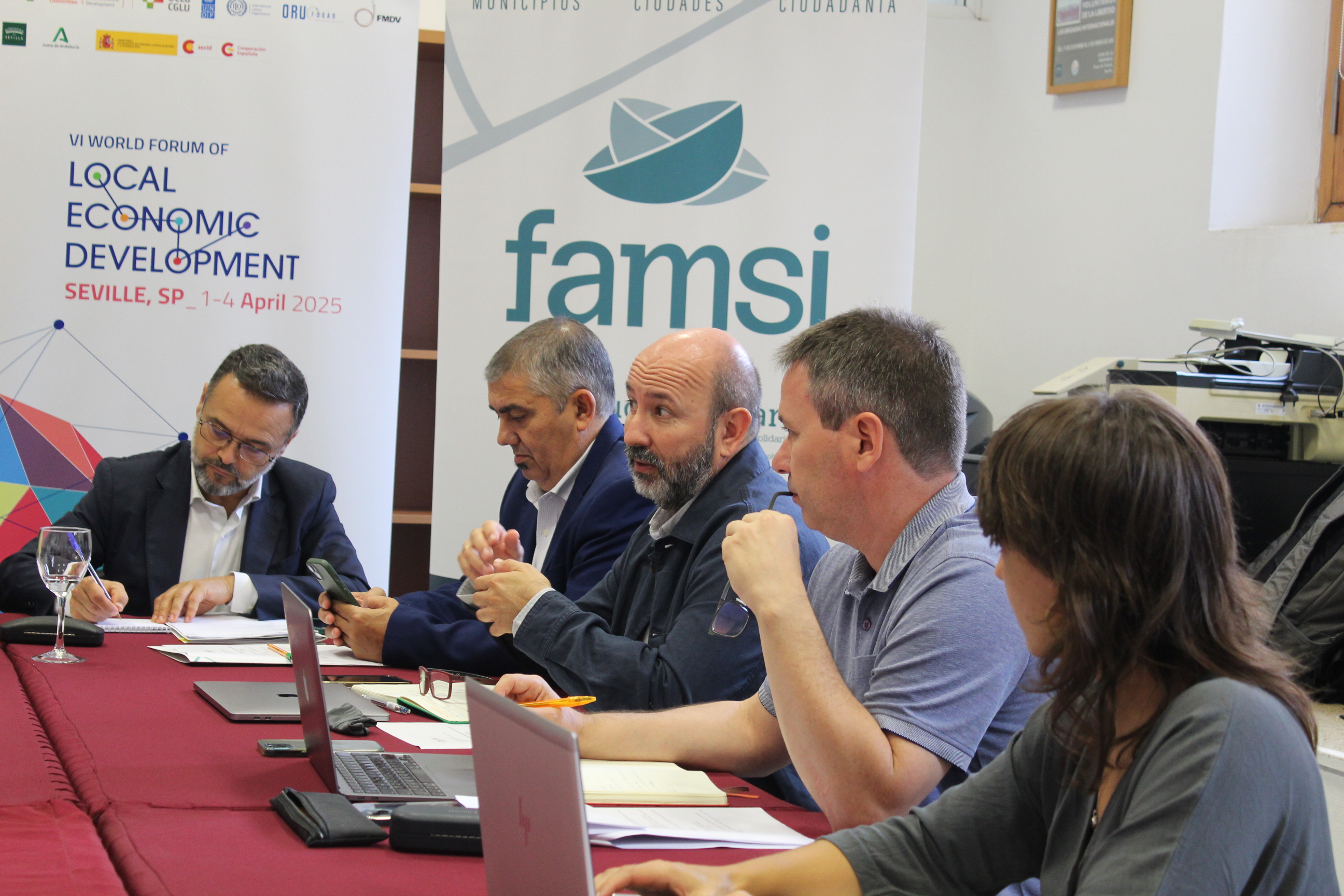 La reunión contó con la participación de Francisco Toajas, diputado provincial de la Diputación de Sevilla y presidente de la Comisión de Desarrollo Económico Local de CGLU; José Luis García, concejal del Ayuntamiento de Sevilla; Manuel Redaño y Emilio Rabasco, gerente y director de FAMSI respectivamente; Elena Fernández, subdirectora general de Planificación y Coherencia de Políticas del Ministerio de Asuntos Exteriores, Unión Europea y Cooperación; Raquel Gallego, coordinadora general de Acción Exterior de la Junta de Andalucía; María Sánchez, coordinadora general de Barrios de Atención Preferente y Derechos Sociales, y Xavier Mestres, coordinador técnico del Foro Mundial de Desarrollo Económico Local.