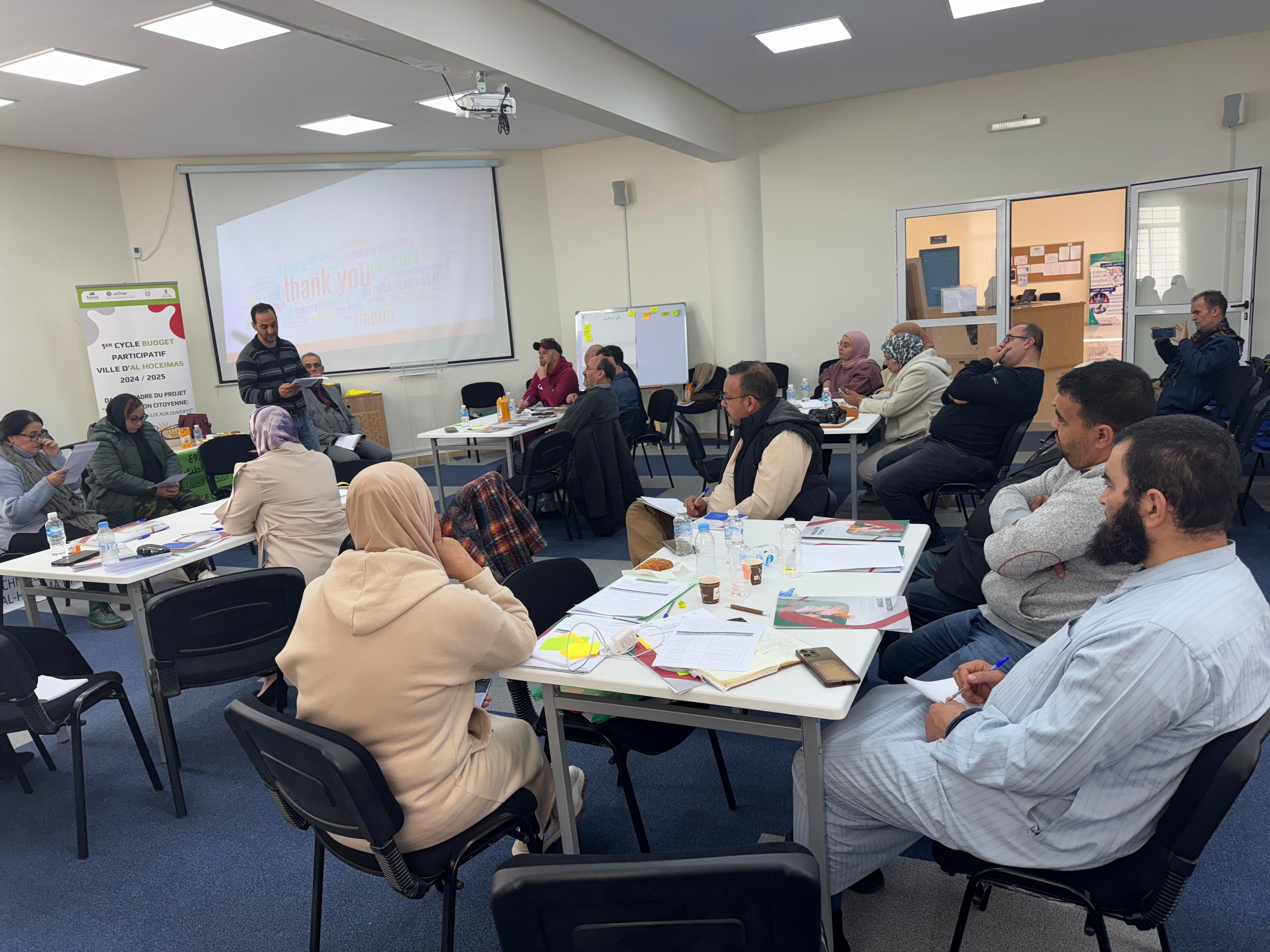 Desde entonces, se han concretizado dos elementos importantes. El ayuntamiento ha aprobado el monto de 123.003, 61 dirhams con el que cofinanciará el futuro proyecto que la ciudadanía identificará en los próximos foros ciudadanos y que finalmente será sometido a voto ciudadano. El otro avance es la constitución del grupo motor del proceso de presupuesto participativo. Dicho grupo está compuesto de 21 personas de perfiles diversos (cinco personas funcionarias, seis personas representantes de asociaciones, tres representantes de instancias consultativas del ayuntamiento, cuatro personas desempeñado actualmente cargos electos, una persona ciudadano representante de las personas mayores, una persona representante de la delegación de la educación nacional y una persona con una consolidada trayectoria de militante en la ciudad de alhucemas).