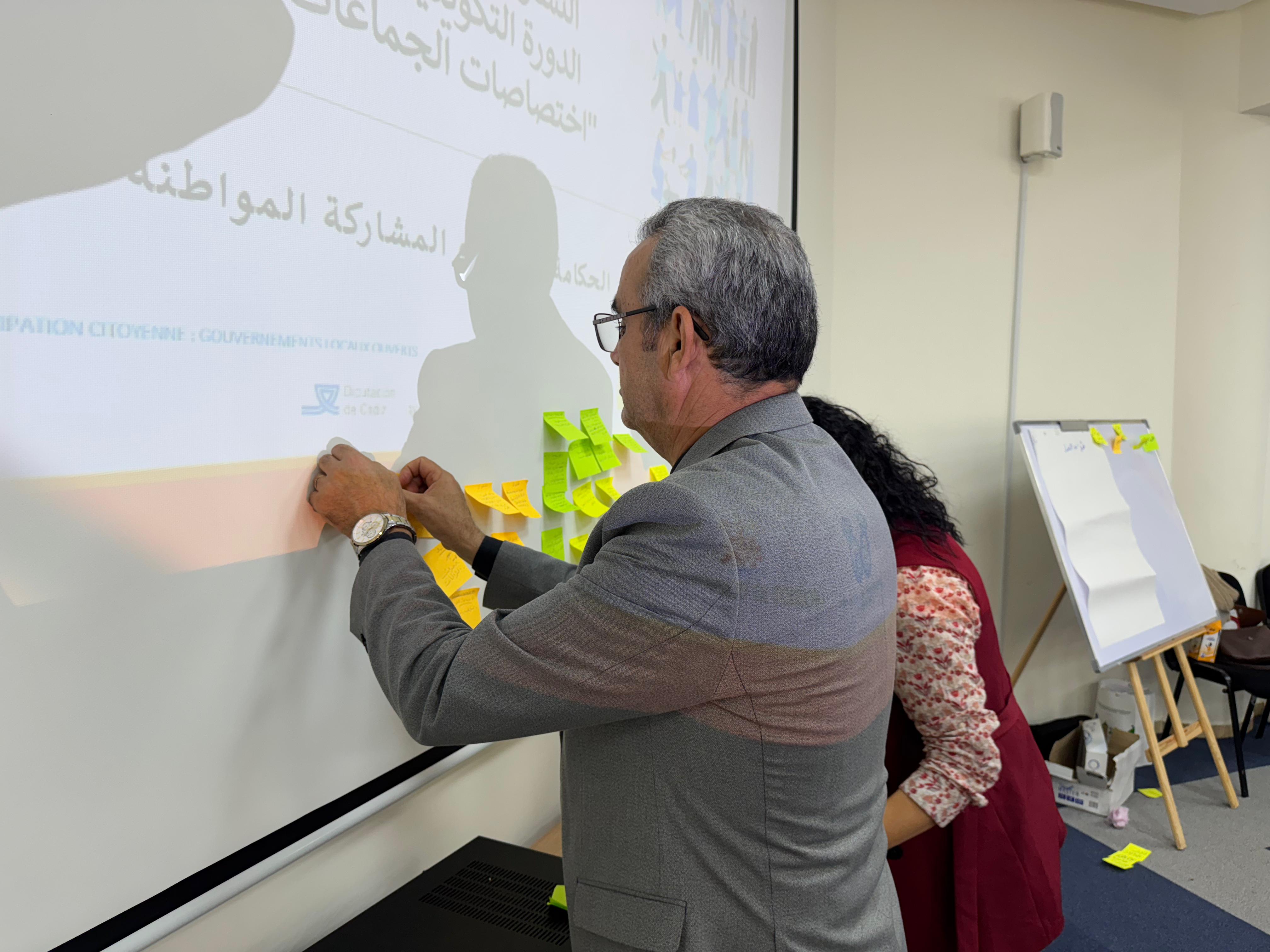 El programa impartido por la consultora Meriem Rhoflane, directora de Mind Process, ha combinado un apartado teórico y una sesión de asesoramiento. Durante la mañana, en la parte teórica se han expuesto las competencias de los ayuntamientos marroquís, explicando las atribuciones y prerrogativas de los consejos municipales. Igualmente se han presentado las normas metodológicas del plan de acción municipal (PAC, en sus siglas en francés) y sus proyectos más emblemáticos, sin olvidar los mecanismos de evaluación del mismo. Finalmente, se ha dinamizado un debate sobre el rol a desempeñar por el grupo motor y los delegados de barrio en el proceso del presupuesto participativo y la comunicación sobre el PAC. Por la tarde, la sesión de asesoramiento (coaching) se ha orientado a preparar el primer foro ciudadano, previsto para el 10 de diciembre. En este espacio se han trabajado y repasado algunos aspectos cruciales para lograr el buen desarrollo del foro, tales como la organización logística, la planificación de acciones preliminares, la movilización de ciudadanos/as y otras partes implicadas y el reparto de roles que garanticen una coordinación eficaz. También se han trasladado algunos consejos prácticos para identificar y resolver posibles contratiempos.