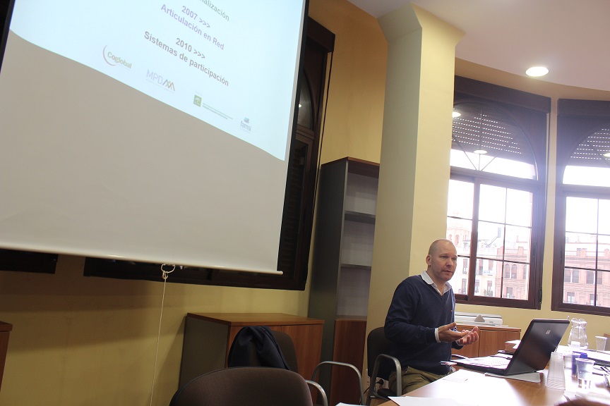 Andrés Falck, director de COGLOBAL, introdujo el marco teórico del itinerario formativo. La base de este marco emana de los estudios previos realizados por diferentes entidades como Naciones Unidas o la misma COGLOBAL y expertos como Yves Cabbanes, que indican que los procesos de metodología participativa, especialmente los de Presupuestos Participativos, son capaces de cambiar los modelos de desarrollo territorial.