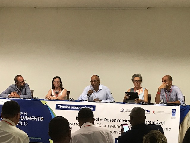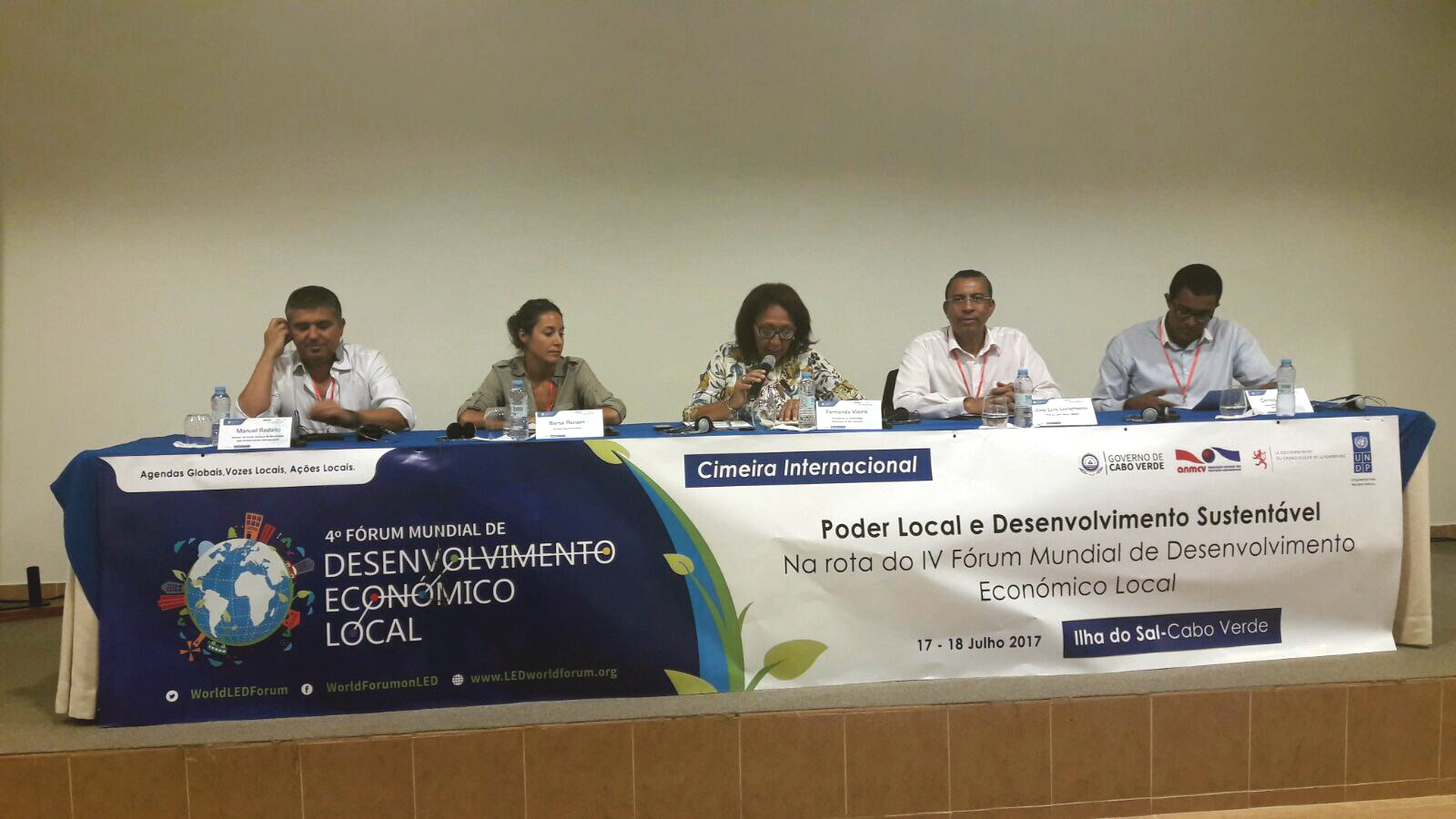 Turismo y desarrollo sostenible, desafíos y buenas prácticas DEL, desafío en la localización de los objetivos del desarrollo sostenible, alianzas para el desarrollo local, cooperación descentralizada y buena gobernanza para el desarrollo económico local, son los cinco paneles que han debatido los asistentes a una cita entre los que Francisca dos Santos destacó la presencia española, junto a los presidentes de las cámaras municipales del archipiélago, presidentes de las asambleas municipales, la Unión de las Ciudades de los Gobiernos locales de África, el PNUD y el representante de la Unión Confederación Nacional de los Municipios de Brasil.